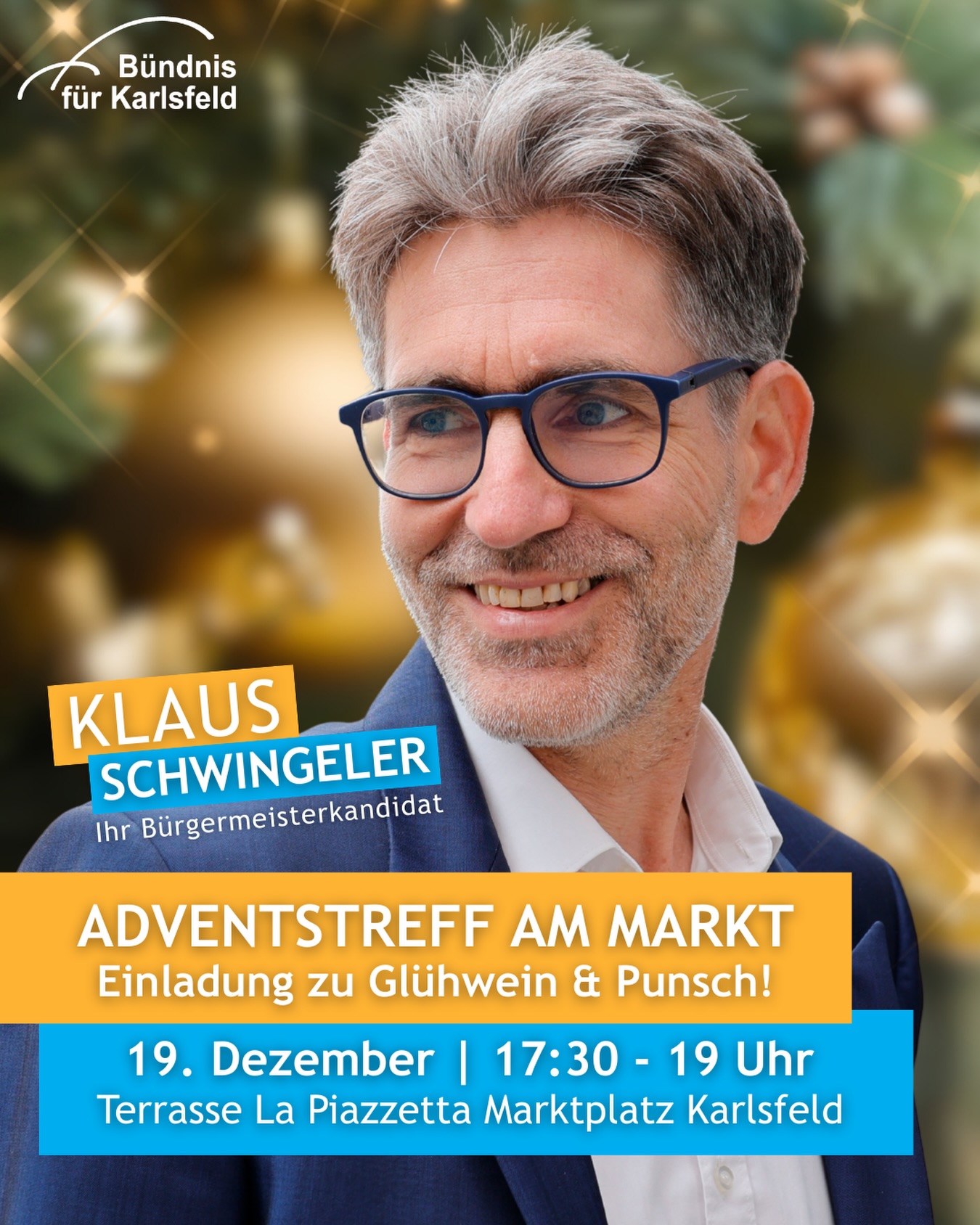 Am Freitag, dem 19. Dezember gibt es von 17:30 bis 19 Uhr Gelegenheit, unseren Bürgermeisterkandidaten Klaus Schwingeler kennenzulernen.